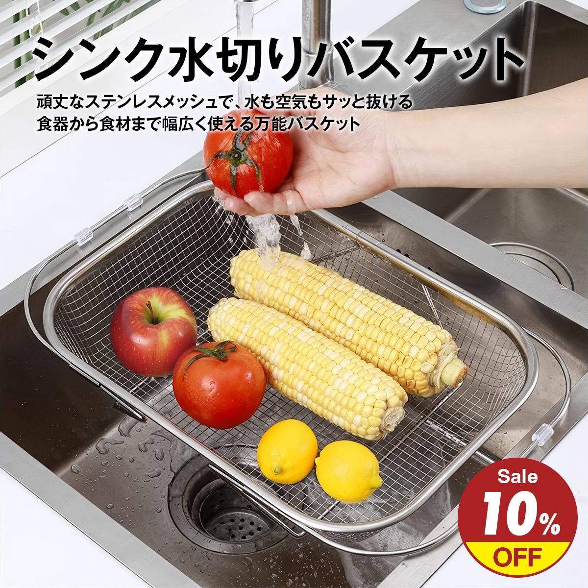 ★イーグルス感謝祭10%OFF+P5倍★ 水切りかご ステンレス シンク渡しタイプ シンクザル 水切りネット 水切りざる 伸縮 大容量 スリム シンク 水切りバスケット 水切 水切りラック 水切りカゴ ディッシュドレイナー 野菜 伸縮 キッチン 大皿 シンクインバスケット