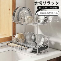 【5038円→実質4635円 8%OFFクーポン11/30まで】水切り 水切りラック ステンレス 水切りかご 横置 キッチン収納 水切りラック 収納 水切りバスケット 省スペース 組み立て簡単 収納ラック 箸立て 大容量 キッチンラック 食器水切りラック 大容量 2段式 シンク上