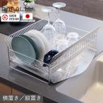 水切りかご ステンレス 縦置き 【レビュー特典】 水切り バスケット 燕三条 下村企販 カトラリーポケット 水切りトレー シンク上 水が流れる 水切り 日本製 グラスホルダー 5〜6人用 キッチン 排水 縦長 [ 水切りラック アクリルトレーの水切り スリム レギュラー ワイド ]