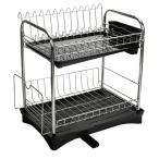 食器 水切りかご 2段式水切りラック バスケット ステンレス製 錆びない 水が自動で流れる 乾燥 食器水切り ディッシュラック 大皿立て 鍋蓋スタンド