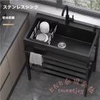 黒 流し台 ガーデンシンク キッチンシンク 置き場付き KNK 屋外用 錆びない ステンレス製 簡易排水シンク 屋内 ガレージ 大容量 自立型シンク 業務用厨房流し