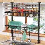 水切りラック 2段 スリム シンク上 【SUS304ステレンス×一年保証】スリム キッチン 一人暮らし 上下左右調整 伸縮式 システム 大容量 おしゃれ 箸立て