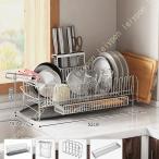 水切りラック シンク上 お皿が立つ スリム 水切りかご 大容量 食器 水切り キッチン ラック シンク 洗い物 水切りトレー シルバー 水筒 2段 ステンレス