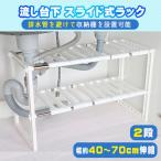 キッチン ラック シンク下 流し台下 棚 スリム 2段 組立簡単 組み立て 小型 コンパクト 収納 スライド 式 伸縮 調整 横長 軽量 白 ホワイト 幅40 幅50 幅60 幅70