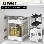 tower 山崎実業 シンク下スライドラック タワー 2段 公式 1460 1461 ホワイト ブラック 送料無料 / シンク下 収納 キッチン収納ラック
