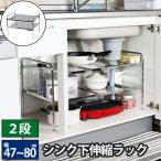 山崎実業 公式 タワー 伸縮シンク下ラック 2段 D40 tower キッチンラック 伸縮 収納ラック シンク下収納 奥行 高さ調整 整理棚 4950 4951