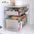 シンク下収納 シンク下スライド収納 2段 幅25cm ( シンク下収納ラック 引き出し付き スリム シンク下 コンロ下 キッチンストッカー ステンレス )