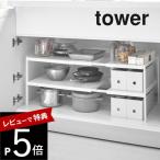 特典付 山崎実業 伸縮シンク下ラック 2段 タワー D40 tower 公式 シンク下収納 キッチン収納 棚 洗面 収納 40cm 白 黒 4950 4951