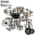 (在庫処分特価) 鍋9点セット 匠弥 ハンドル着脱式鍋4点 フライパン パスタポット 二段蒸し器 天ぷら鍋 ケトル 日本製 ( ガス火対応 鉄フライパン )