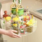 クリア 調味料収納トレイ 透明 回転 調味料ラック スパイストレイ 小物入れ キッチン収納 化粧品収納 滑り止め 組み立て不要 キッチン収納 冷蔵庫収納 回る