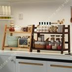 調味料ラック 2段 スパイスラック 木製 おしゃれ 収納 棚 調味料収納 植物ラック キッチン収納ラック ディスプレイラック 卓上 アンティーク 竹
