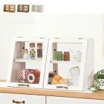 スパイスラック カウンター上収納 木製 キッチンラック 調味料 収納 棚 扉付き 食器棚 キッチン ガラス ミニ 幅60cm