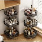 調味料ラック 入れトレイ 360°回転式 スパイスラック ステンレス製 耐荷重20kg 丸型 調味料スタンド 調味料置き 小物入れ キッチン収納