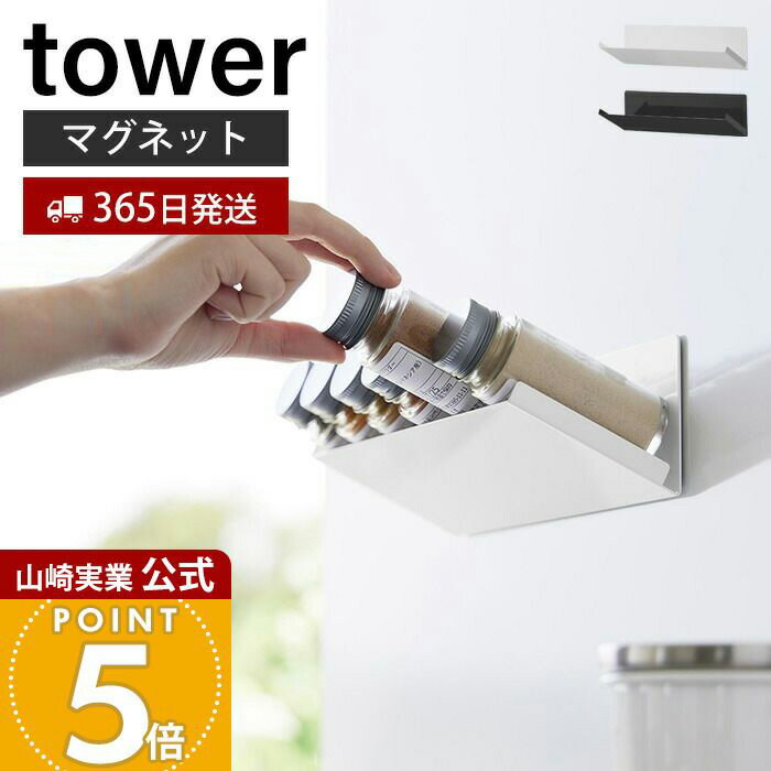 お買物マラソン/《 山崎実業 マグネット斜め置きスパイスラック タワー 》 tower 公式 ホワイト ブラック 1905 1906 斜め収納 調味料ラック スパイスラック マグネットラック 冷蔵庫 浮かせる 調味料 スパイス 収納ラック 磁石 シンプル YAMAZAKI