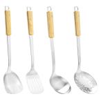 FJNATINH中華鍋用スパチュラとお玉のセット 14.2〜15インチの中華鍋用調理器具 ステンレス製中華鍋用スパチュラ…
