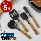 [ recolte キッチンツール 4点セット ]レコルト シリコン 耐熱 スパチュラ クッキングスプーン ターナー 直置き 天然木 ブラック RKT-1 RKT-2 RKT-3 RKT-4