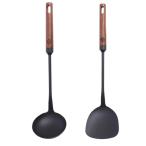 WANGYUANJI 中華スパチュラ へら おたま 窒化鉄製 中華鍋鉄製フライパン専用お玉ヘラセット 天然木ハンドル 穴有り 収納便利 取扱やす