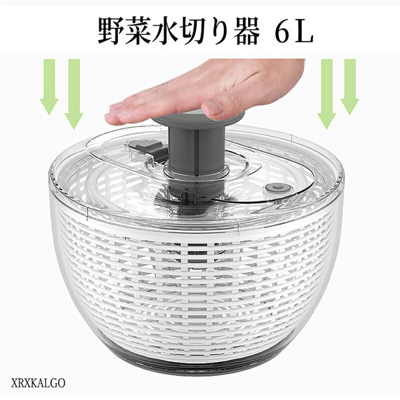 「10%OFFスーパーセール」プッシュ式水切り器 野菜脱水機 6L サラダスピナー サラダ水切り 野菜スピナー 水切り ボウル ザル 回転式 手動 丸洗い アシスト 簡単 便利 時短 蓋付き キッチン便利グッズ お手入れ簡単 家庭用