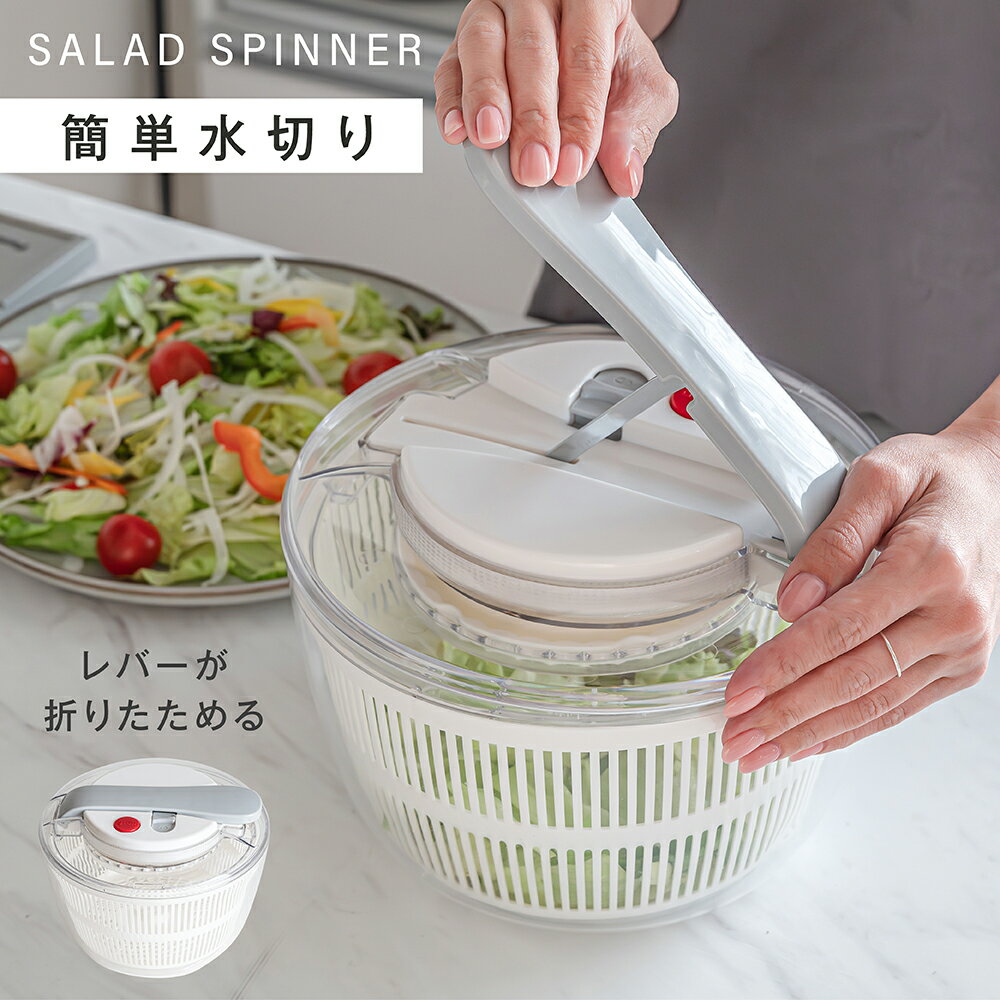 \もれなく45%OFF!!クーポンで/サラダスピナー 水切り器 レバーがおりたためる 野菜水切り器 ボウル ざる 丸型 ふた 蓋付き 時短 一人暮らし 回転 コンパクト 小さめ