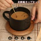 コーヒーカップ カップ木製マット スプーン 高級感 食器 陶器 珈琲カップ カップ コップ 和食器 モダン 無地 珈琲マグ 3点セット 母の日 おしゃれ