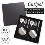 クチポール ゴア GOA ブラック/シルバー マット仕上げ テーブルスプーン&フォーク&ナイフ&カトラリーレスト 8点セット おしゃれ カトラリー SNS