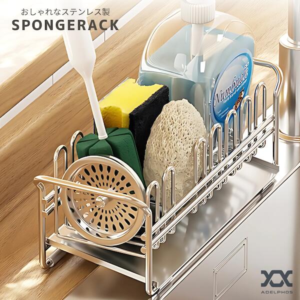 【スーパーSALE!12%OFF! P2倍!】 スポンジラック スポンジホルダー スポンジラック シンク周り 洗剤 スポンジ置き 収納 台所用品 ボトルスタンド キッチン ステンレス 大容量 シンプル おしゃれ