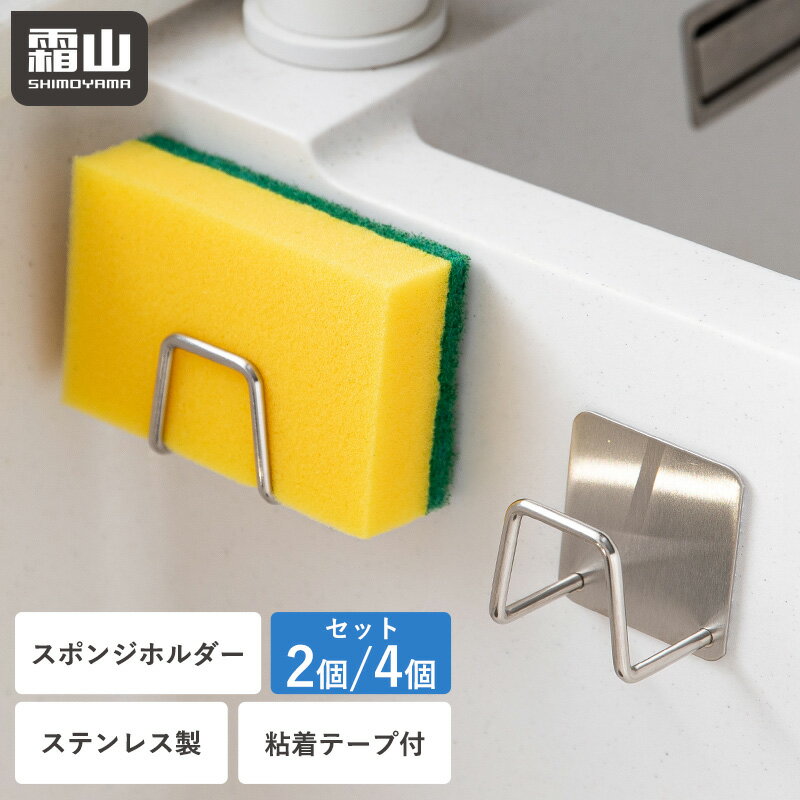 【15%OFF 全商品対象】【特典付】スポンジホルダー ステンレス製 2個セット 4個セット ステンレス スポンジ置き スポンジラック スポンジ収納 キッチン収納 シンクラック シンク周り 水回り 粘着テープ式 フック 収納ラック 収納 霜山