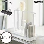 山崎実業 TOWER タワー 水が流れるスポンジ&ボトルホルダー スポンジ ラック 置き 台所用品 おしゃれ