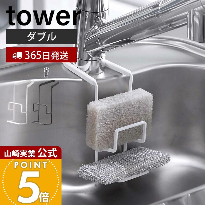 山崎実業 公式 タワー スポンジ置き ダブル スポンジラック tower タワー 蛇口にかけるスポンジホルダー おしゃれ シンク周り 4390 4391
