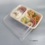 バガス 再生紙製容器 二区切りパルプトレイ228×165用 PP 蓋 300個セット (サトウキビの搾りカスから再生)業務用 大容量