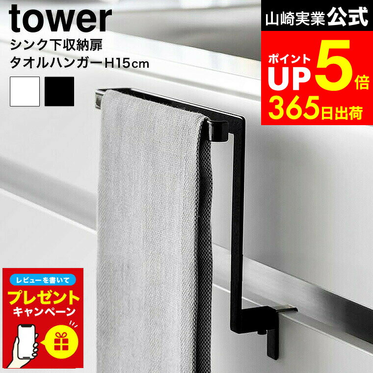 tower 山崎実業 キッチンシンク下収納扉タオルハンガー タワー キッチン 公式 H15 送料無料 1590 1591 ホワイト ブラック / タオル掛け