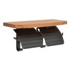 トイレットペーパーホルダー ダブル ツイン 2連 ウッドシェルフ 飾り棚 真鍮 ブラック 黒 おしゃれ GI-384046
