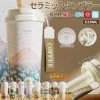 セラミックタンブラー タンブラー 520ML 二重構造 保温携帯コーヒーカップ おしゃれ 大容量 水筒 保冷 耐熱 3Way セラミック トラベルカップ 軽量 持ち運び