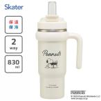 ハンドル付 2WAY ストローステンレスタンブラー 830ml スヌーピー バッジ スケーター STSTB9 / 保温 保冷 直飲み SNOOPY PEANUTS ピーナッツ シンプル ホワイト