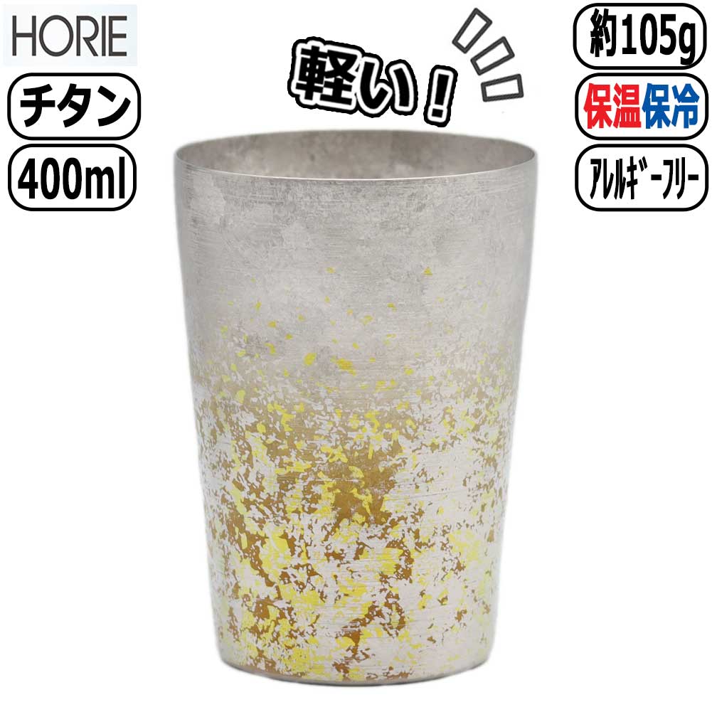 【12月1日5千円8%OFFクーポン】HORIE ホリエ チタン製二重タンブラー 窯創り プレミアム 金T-08-KM350G 敬老の日 古希 喜寿 軽量 軽い 保温保冷 カップ コップ 泡立ち ビールグラスアレルギーフリー