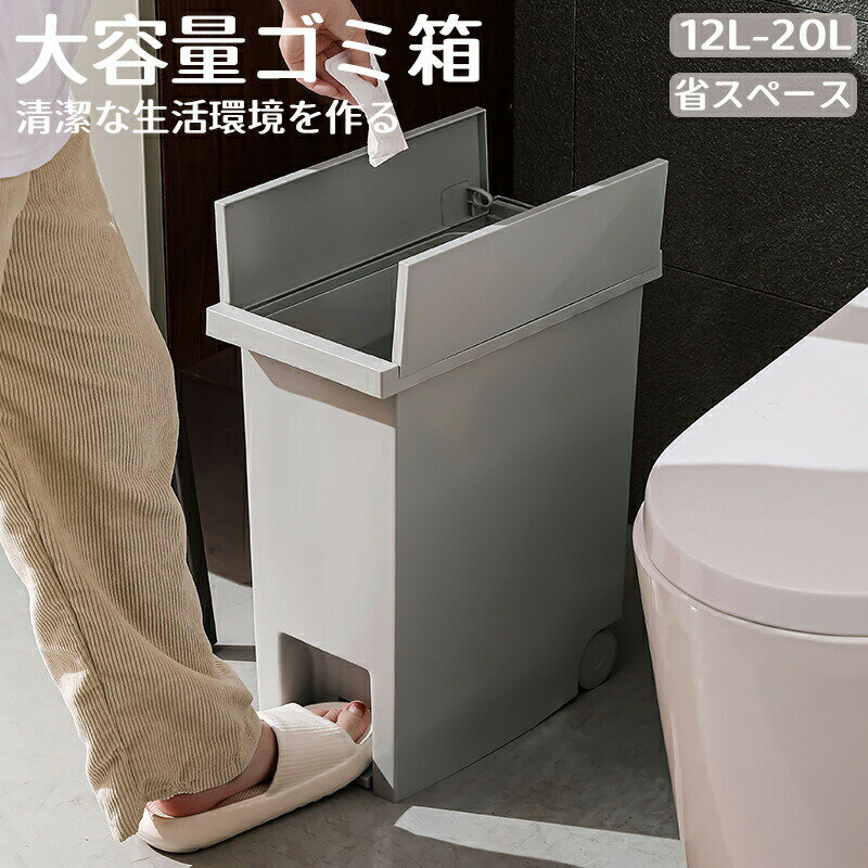 ダストボックス (12-20L)ゴミ箱 大容量 キャスター付き ポケット インテリア 無地 シンプル おしゃれ 観音開き 応ダストボックス キッチン スリム ふた付き ごみ箱 フタ付き 蓋 12-20L対 20リットル消音設計省スペースホワイト
