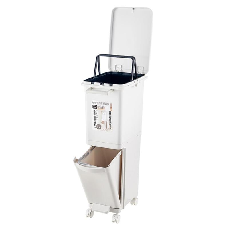 AetherTech ゴミ箱 ダストボックス 分別 ペダル式 フタ付き スリム 2段 3分別可能 キャスター付き ワンタッチ開閉 大容量 消臭 密閉 衛生 組立品 (ホワイト ダブル34L)