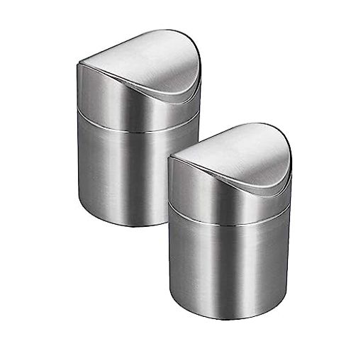 ETRAVELゴミ箱ふた付き小さいおしゃれステンレス卓上ごみ箱車用ミニごみ箱蓋付きダストボックス場所とらない事務家庭適用シンプル(ステンレスシルバー*2)