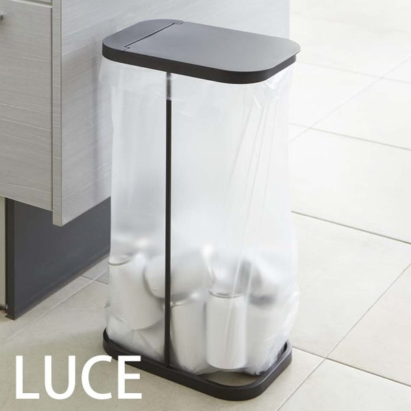 山崎実業 ゴミ箱 ルーチェ 分別ゴミ袋ホルダー ブラック 7553 | ごみ箱 ダストボックス 分別 資源ゴミ ふた付き スタンド シンプル スリム コンパクト 省スペース ゴミ袋 スタンド