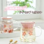 ティーカップ ポカロティー 耐熱ガラス 4点セット 茶こし付き スプーン付き 蓋付き マグカップ ガラス 透明 紅茶 桜柄 春の日 記念日 誕生日 プレゼント