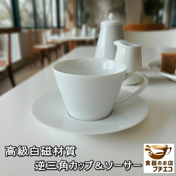 白磁 逆三角 カップ ソーサー 満水200ml 白 電子レンジ可 食洗機対応 美濃焼 日本製 コーヒーカップ おしゃれ ブランド おすすめ かわいい 通販 人気 陶器 モダン 北欧風 ホワイト ソーサー付き シンプル シルエット 業務用 珈琲カップ ナチュラル ティーカップ