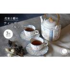 ふるさと納税 食器・グラス ティーカップ 佐賀県 有田町 花束と蝶のティーポット カップ&ソーサー (A) 2客 3点セット 矢田 久美子 手作り キュート 白磁 洋食…