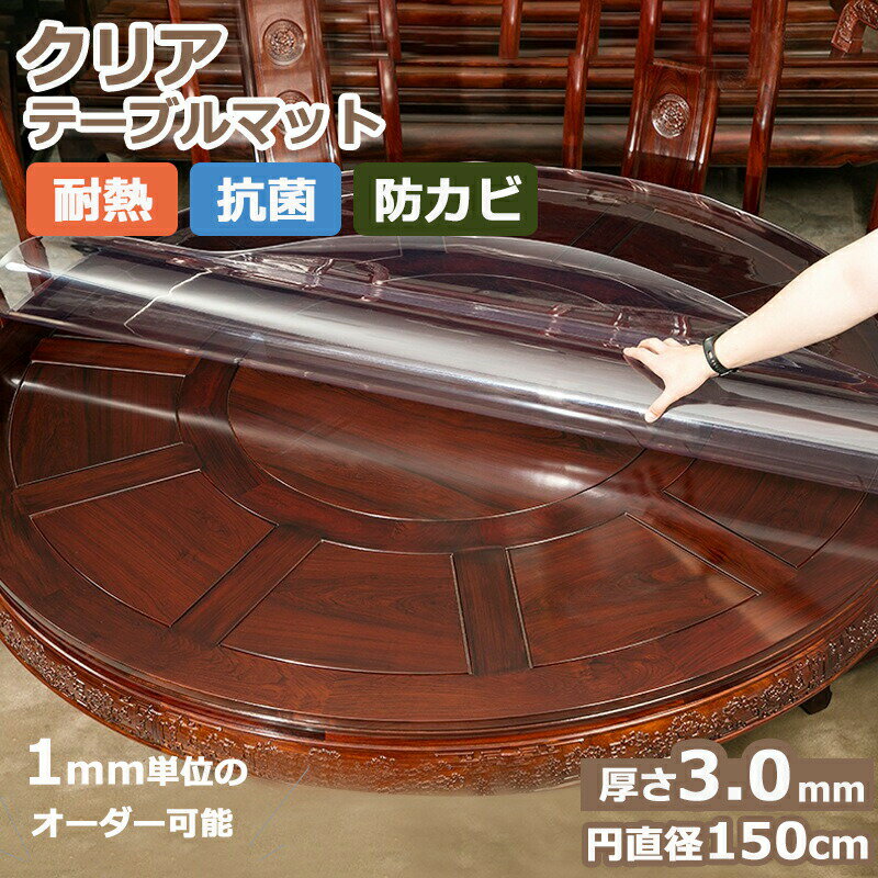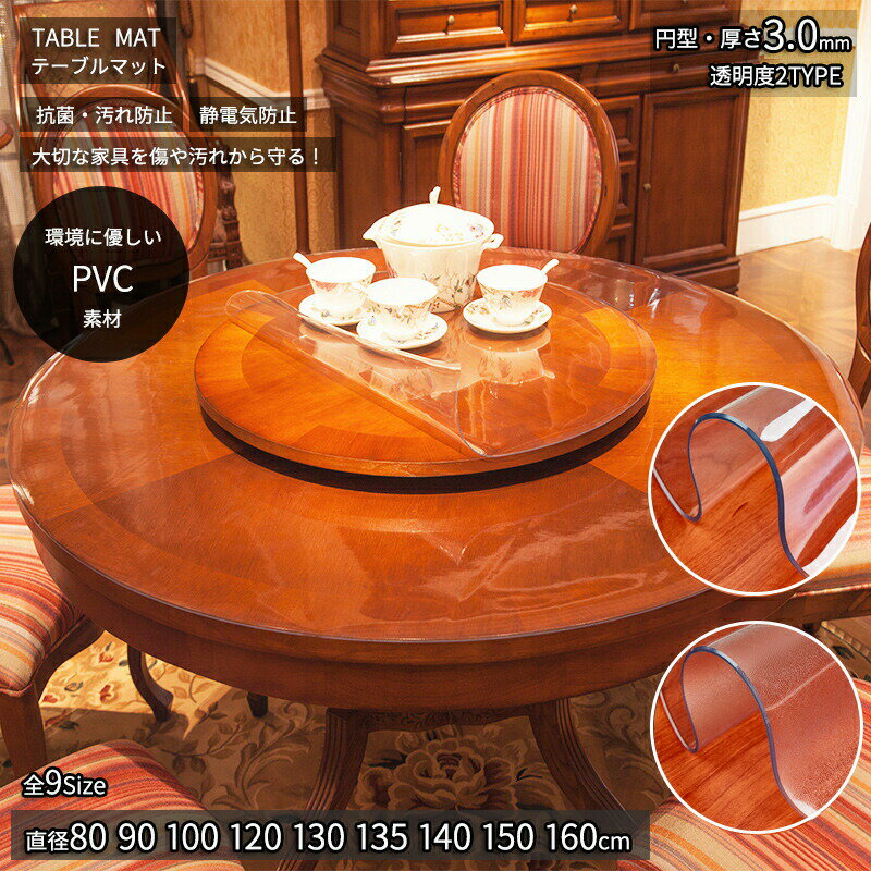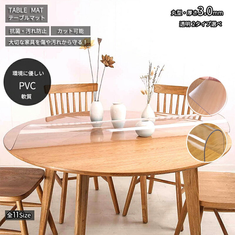 【4950円→実質3825円 P10+5%COUPON+10%OFF! 11/19 23:59迄】テーブルマット 厚3.0mm 円形 テーブルクロス ビニール PVC クリアマット 「多用途」クリアデスクマット 17size チェアマット ダイニングマット テーブル マット 撥水 傷汚れ防止 オフィス デスク 保護シート