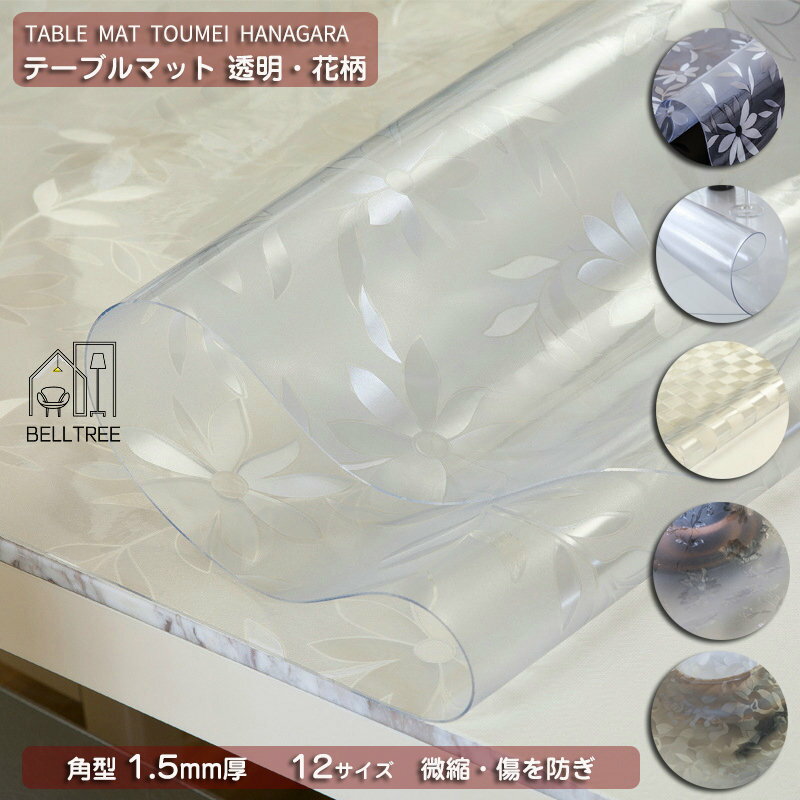 【4235円→実質3273円 P10+5%COUPON+10%OFF! 11/19 23:59迄】テーブルマット 透明 花柄 角型 1.5mm厚 ダイニングテーブルマット 透明 テーブルマット テーブルクロス デスクマット 微縮 ビニールシート クリアー テーブルランナー ビニールマット 12size