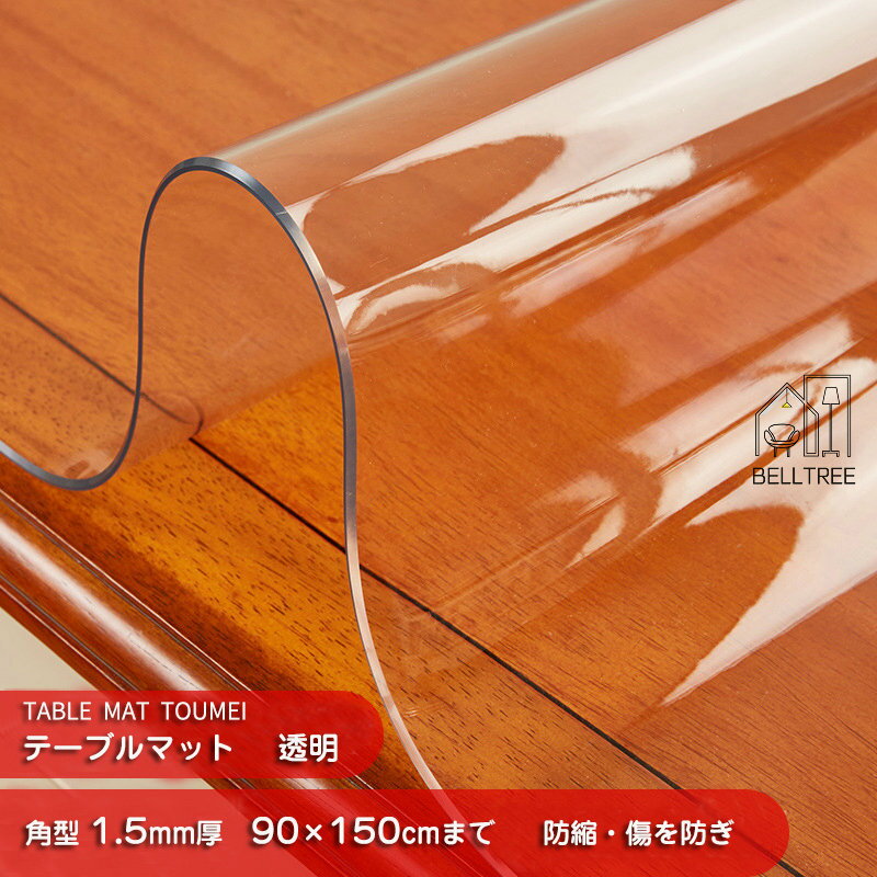 【5005円→実質3868円 P10+5%COUPON+10%OFF! 11/19 23:59迄】テーブルマット 透明 1.5mm厚 面取り加工 非密着タイプ ビニールマット ダイニングテーブルマット 角の丸み 150×90cmまで 透明 テーブルマット テーブルクロス デスクマット 防縮 ビニールシート クリアー