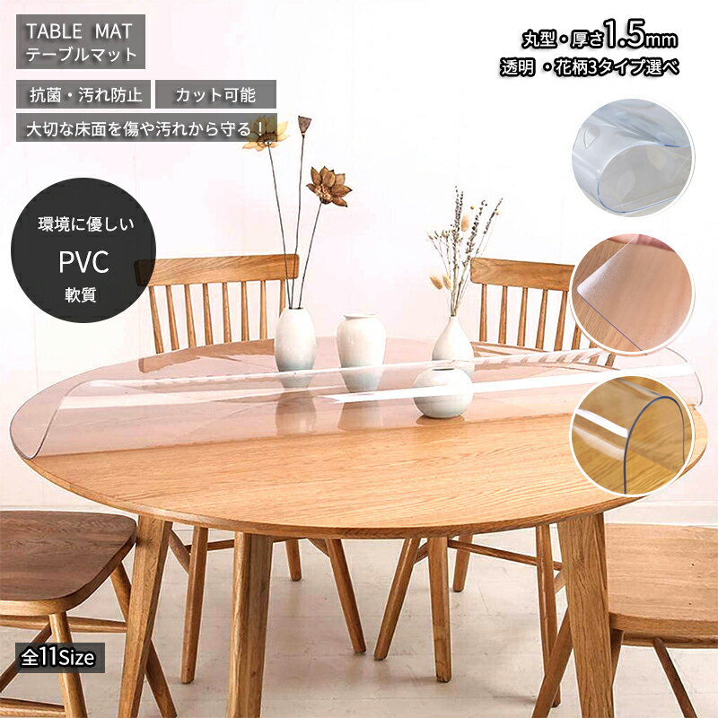 【4290円→実質3315円 P10+5%COUPON+10%OFF! 11/19 23:59迄】テーブルマット 厚2.0mm 円形 テーブルクロス ビニール PVC クリアマット 「多用途」クリアデスクマット 17size チェアマット ダイニングマット テーブル マット 撥水 傷汚れ防止 オフィス デスク 保護シート