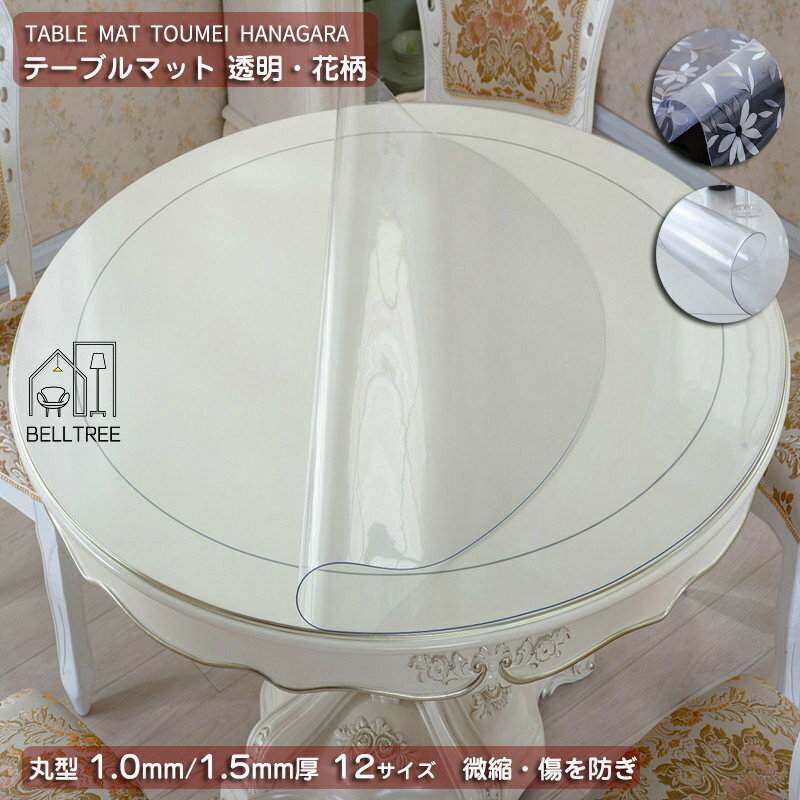 【4235円→実質3273円 P10+5%COUPON+10%OFF! 11/19 23:59迄】テーブルマット 透明 花柄 丸型 1.5mm厚 ダイニングテーブルマット 透明 テーブルマット テーブルクロス デスクマット 微縮 ビニールシート クリアー テーブルランナー ビニールマット 12size