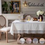 テーブルクロス 綿 麻 北欧 レース付き 可愛い バラ花 防塵 テーブルカバー テーブルマット 長方形 四角 おしゃれ 四季適用 清潔簡単 食卓カバー ダイニング
