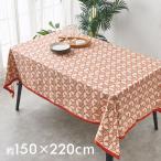 テーブルクロス インド ブロック プリント 柄 綿 コットン 約150cm×220cm テーブルカバー 布 ダイニング オレンジ アジアン エスニック 34453-og