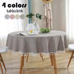 テーブルクロス 円形 和式 フリンジ裾 テーブルカバー 丸形 ストライプ柄 耐熱 汚れ防止 インテリア 高級感 家庭用パーティー お手入れ簡単 おしゃれ 食卓カバー
